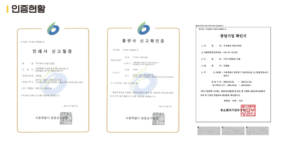 ‘마움프린팅’라는 이름의 법인으로 새롭게 재정비하게 되었습니다.